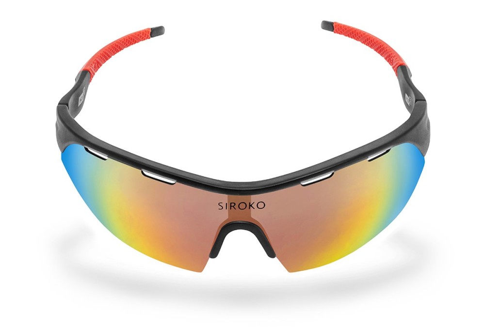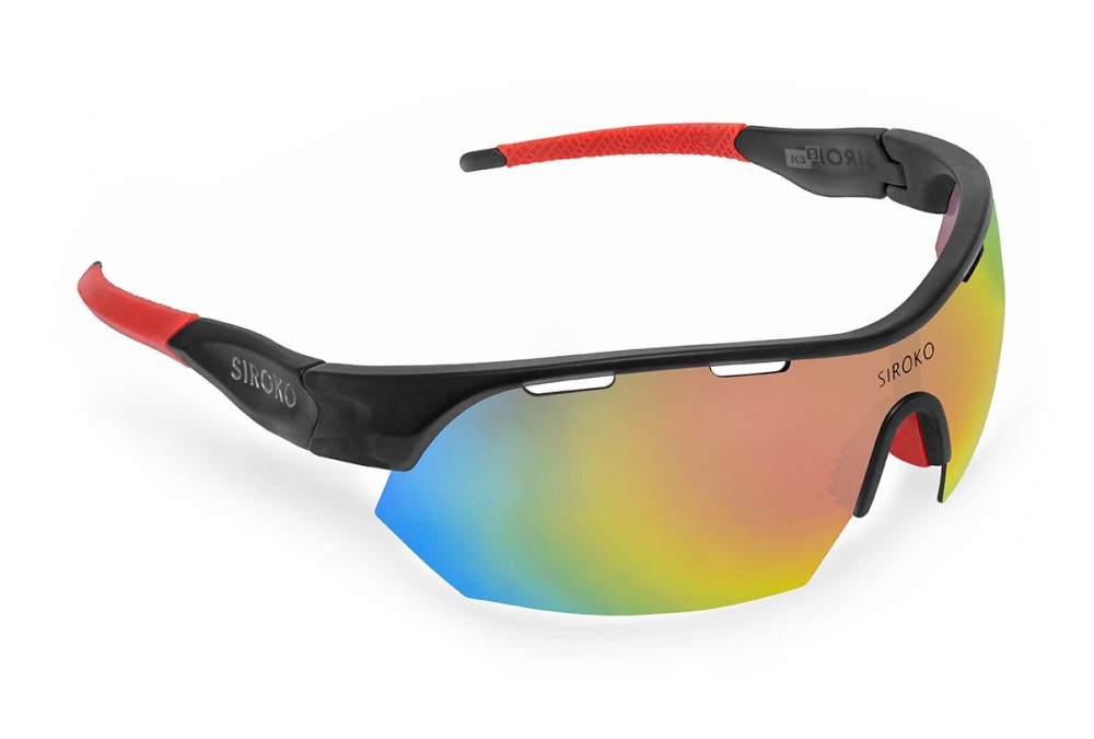 The new Siroko K3s Athens are at the cutting edge of athletic sunglasses. Lighter than ever (they only weigh 26 g thanks to their latest generation PC frame). New special TAC 1.2 mm polarized interchangeable panoramic lens with anti-fog film and REVO cover. Perfected DrySky anti-fog system. Includes hard case, microfiber polyester bag, earsock and nose pad replacement rubbers. Accessories sold separately: Photochromic lens, Clear lens, ClearFog lens and TR90 OptiClip.