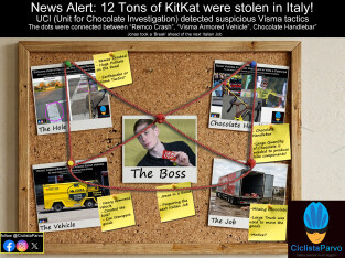News Alert: 12 Tons of KitKat were stolen in Italy! UCI (Unit for Chocolate Investigation) detected suspicious Visma tactics The dots were connected...