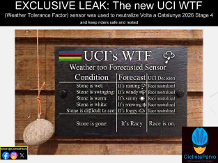 EXCLUSIVE LEAK: The new UCI WTF (Weather Tolerance Factor) sensor was used to neutralize Volta a Catalunya 2026 Stage 4 and keep riders...