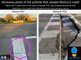 Exclusive photo of the pothole that caused Remco’s crash