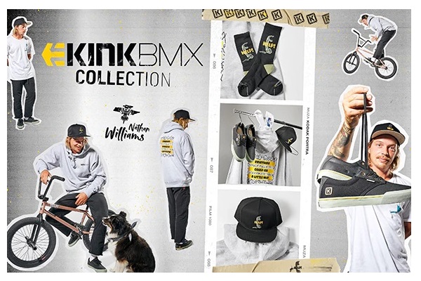The etnies KINK BMX Collection includes Nathan’s favorite Jameson Vulc, the new Wallride one-of-a-kind chino pant built specifically for BMX, as well as a hoodie, tees, hats and socks.