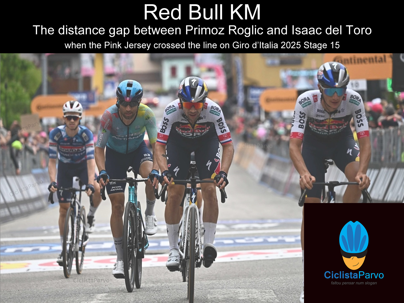 Red Bull KM The gap distance between Primoz Roglic and Isaac del Toro