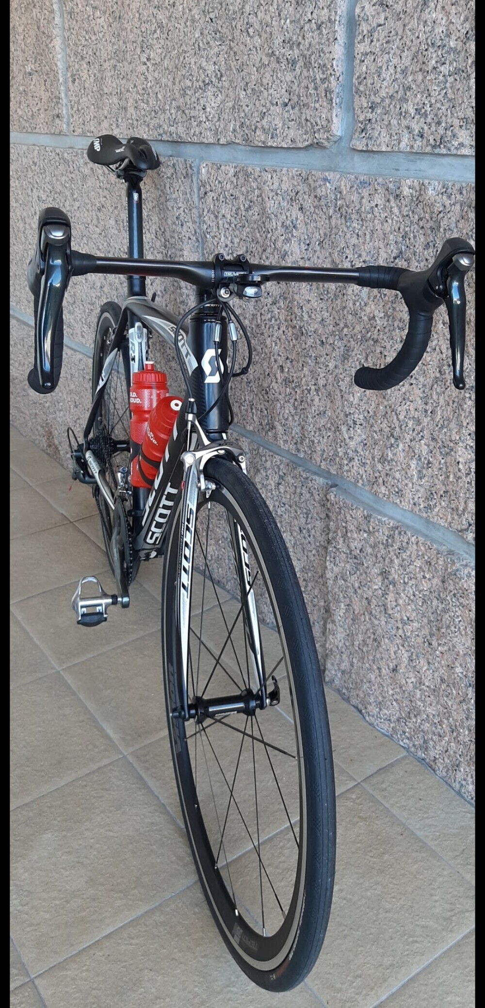 Vendo Scott Addict R3 T54 em carbono bike muito estimada as imagens comprovam o mesmo, guiador em carbono eco 90 achatado de 44cm, espigão ritchey em carbono, grades bidon em carbono, pinças de travões shimano 105 e transmissão colocada recente Shimano Tiagra com bons andamentos quer para rolar quer para subir; pedaleira 36/52 cassete 11/32 ainda é uma 2/10 com rodas de origem mavic aksium com pneus Michelin dinamics 700X25 com beira beje. Com as rodas da imagem estão novas pouco andaram as vision team 35 de rolamentos com pneus novos vittoria zaffiro pro graphene 700x28 mais 200€. Ainda ofereço o suporte do GPS que está nas imagens. Mais dúvidas disponham.