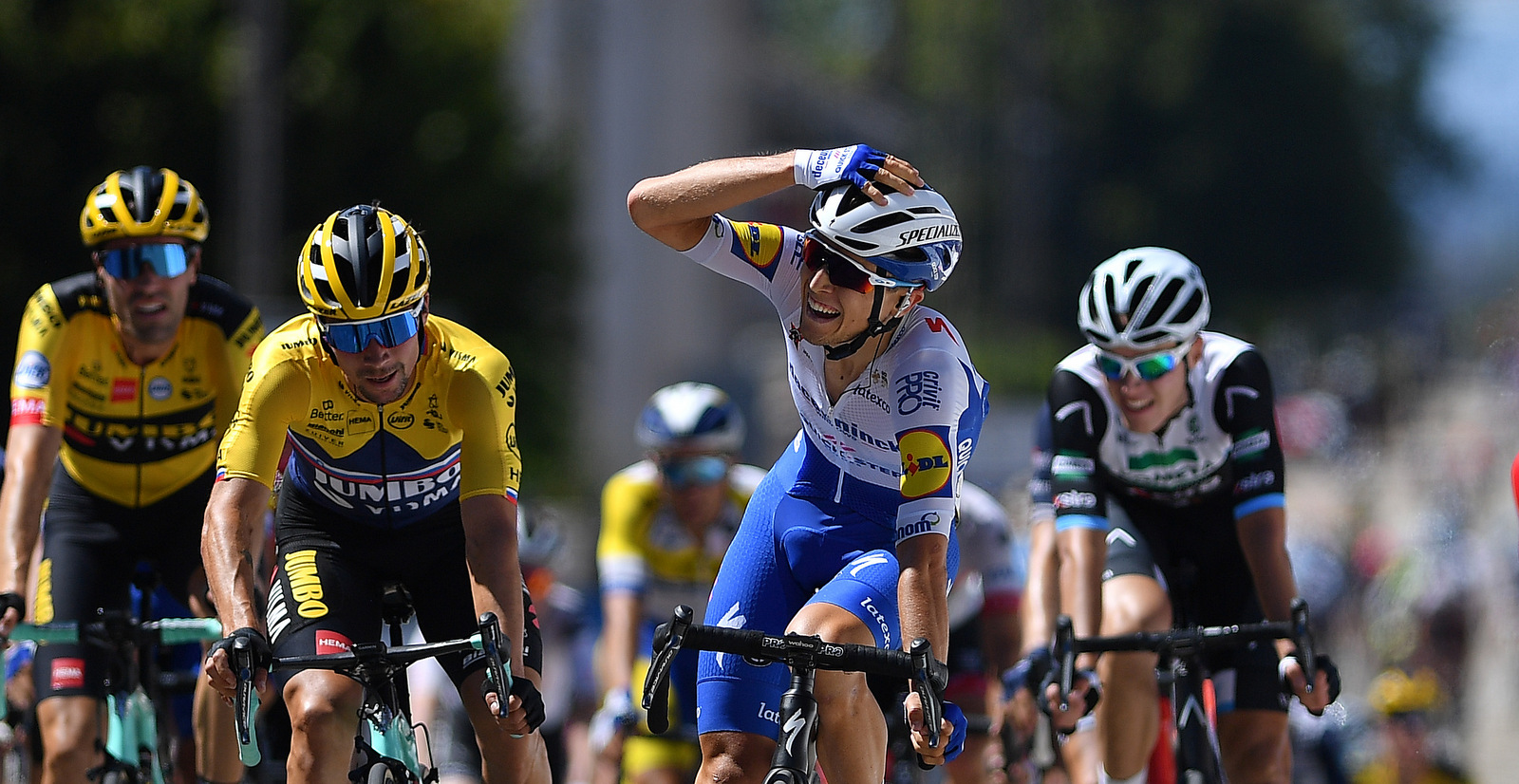 Deceuninck – Quick-Step Floors Cycling Team: "The young Italian wins a pulsating sprint on the opening stage of the Tour de l’Ain. Andrea Bagioli showed the true depth of his talent just seven months into his maiden World Tour season..."