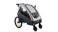 Este reboque de bicicleta para crianças é ideal para os seus passeios de bicicleta. Tem também um grande compartimento de armazenamento atrás das costas.