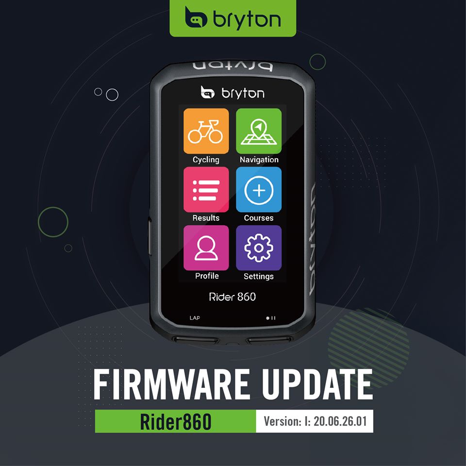 Bryton: "We have just released a new update for the Rider 860! To update your Rider 860, please ensure you have a stable WLAN connection then go to Settings > Software Update > Check Version > and select Download. Be sure to also update the Bryton Active app for a smoother and more stable experience."