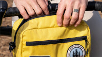 The Yellowstone handlebar bag is made of durable, water-repellent polyamide fabric. Easy to attach to the bike thanks to the two main straps and an elastic security cord that loops around the head tube. The 4L main compartment includes one internal mesh pocket plus two extra pockets. The outer pocket features a reflective patch. Additional straps to increase storage space. Extra shoulder strap for off-bike use.