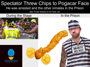 Spectator Threw Chips to Pogacar Face He was arrested and the other inmates in the Prison also Threw Snacks to his Face, etc.